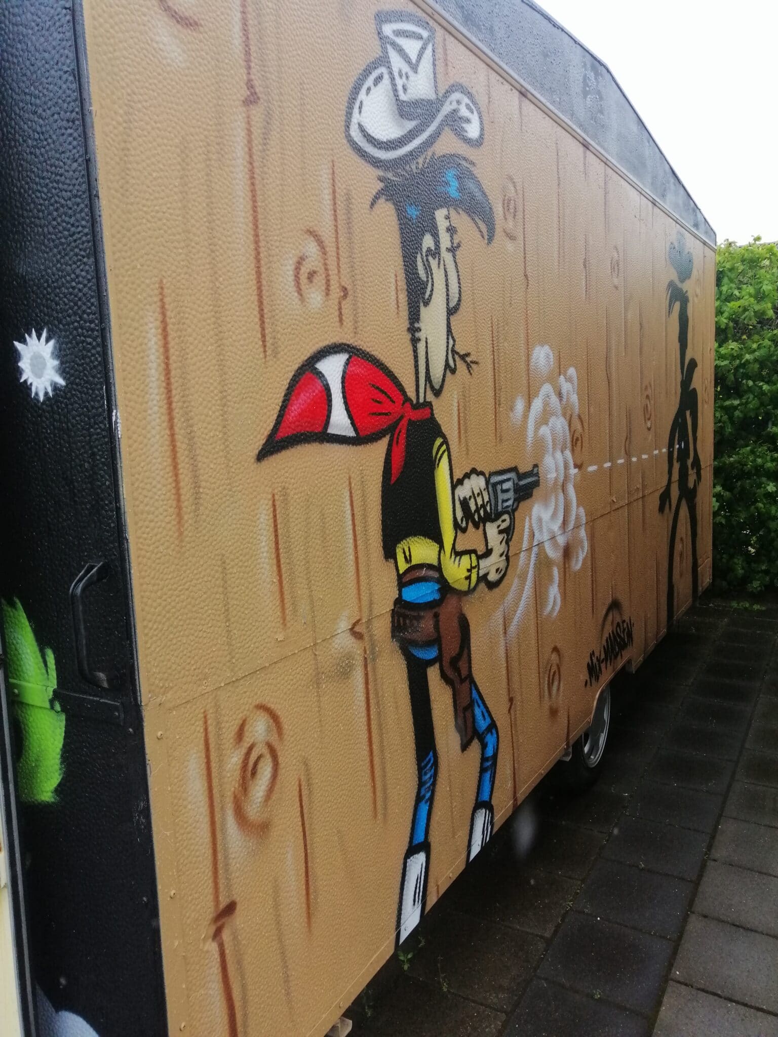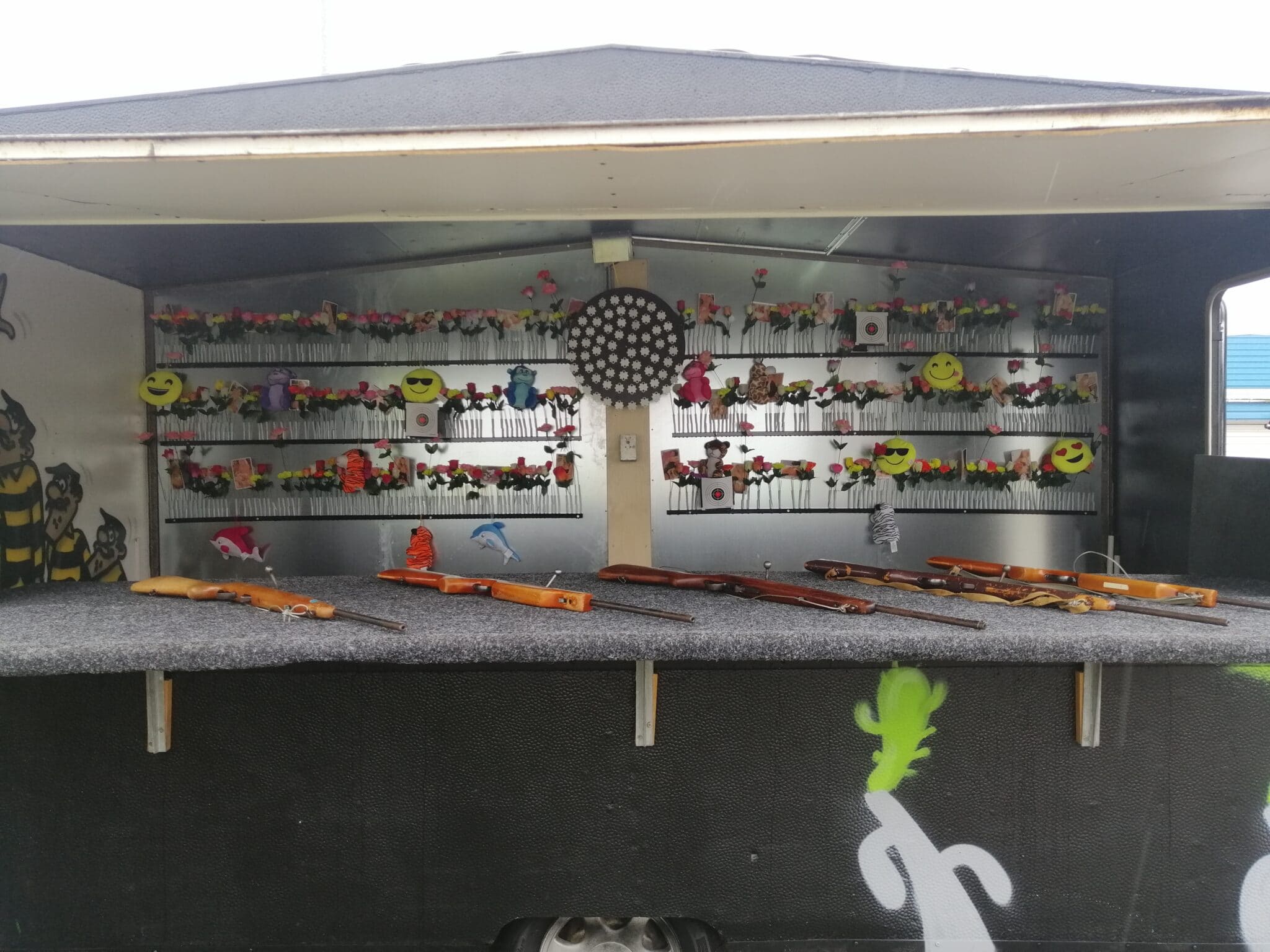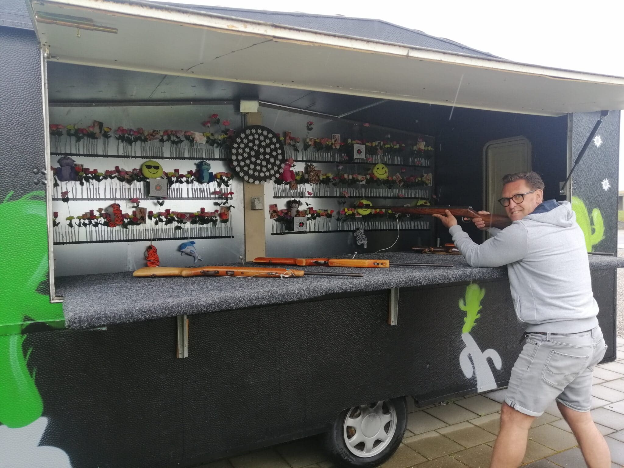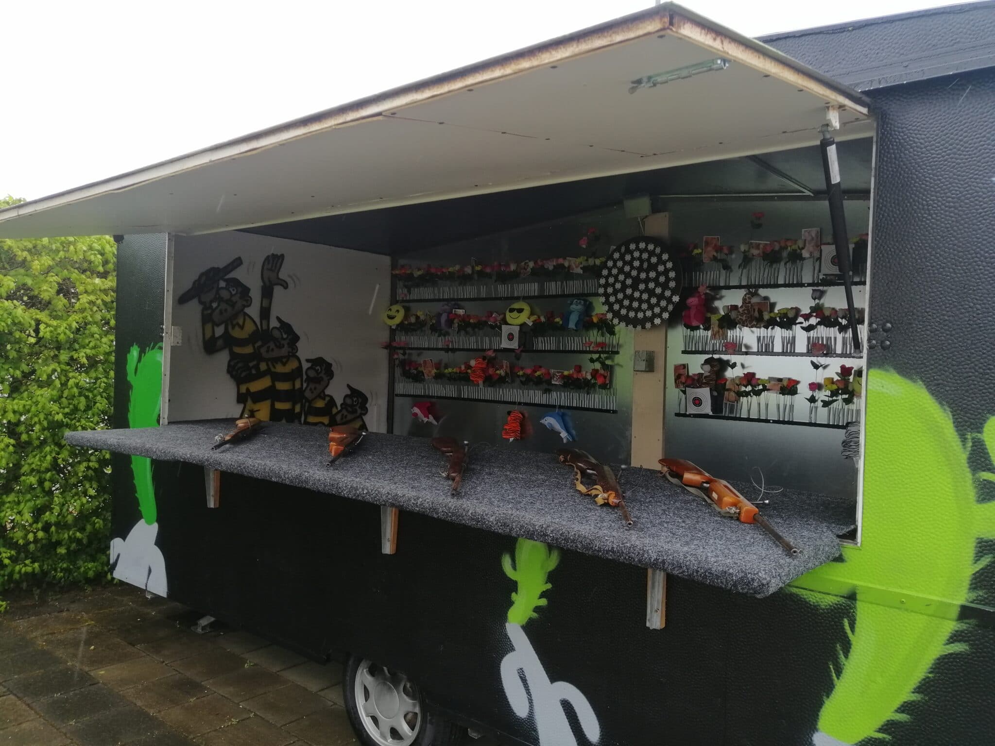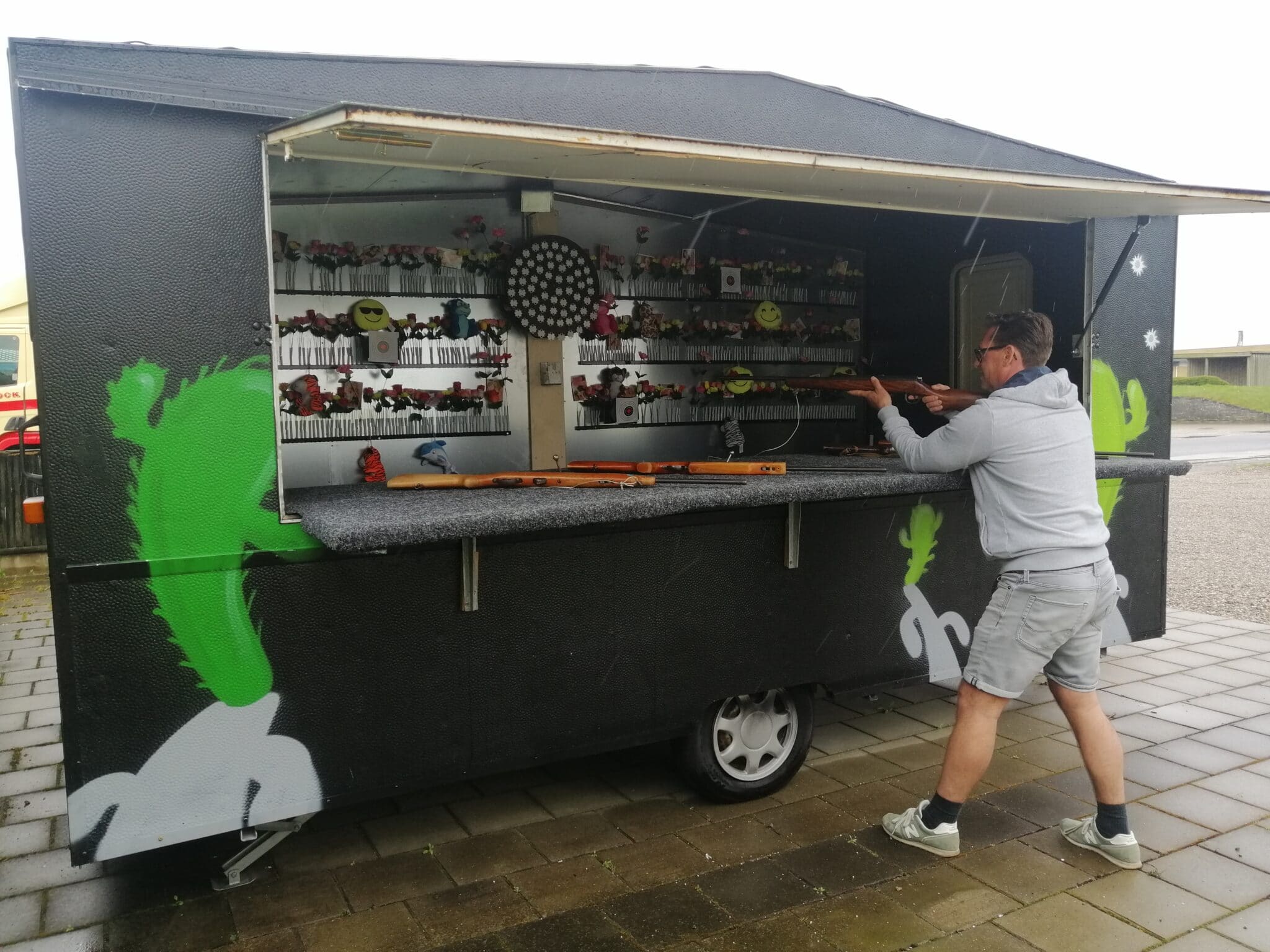 Udstyret med 4-6 af de klassiske Haenel 310 geværer, som man kender fra Tivoli med 8 og 12 skuds magasin og alt det hagl du kan bruge.